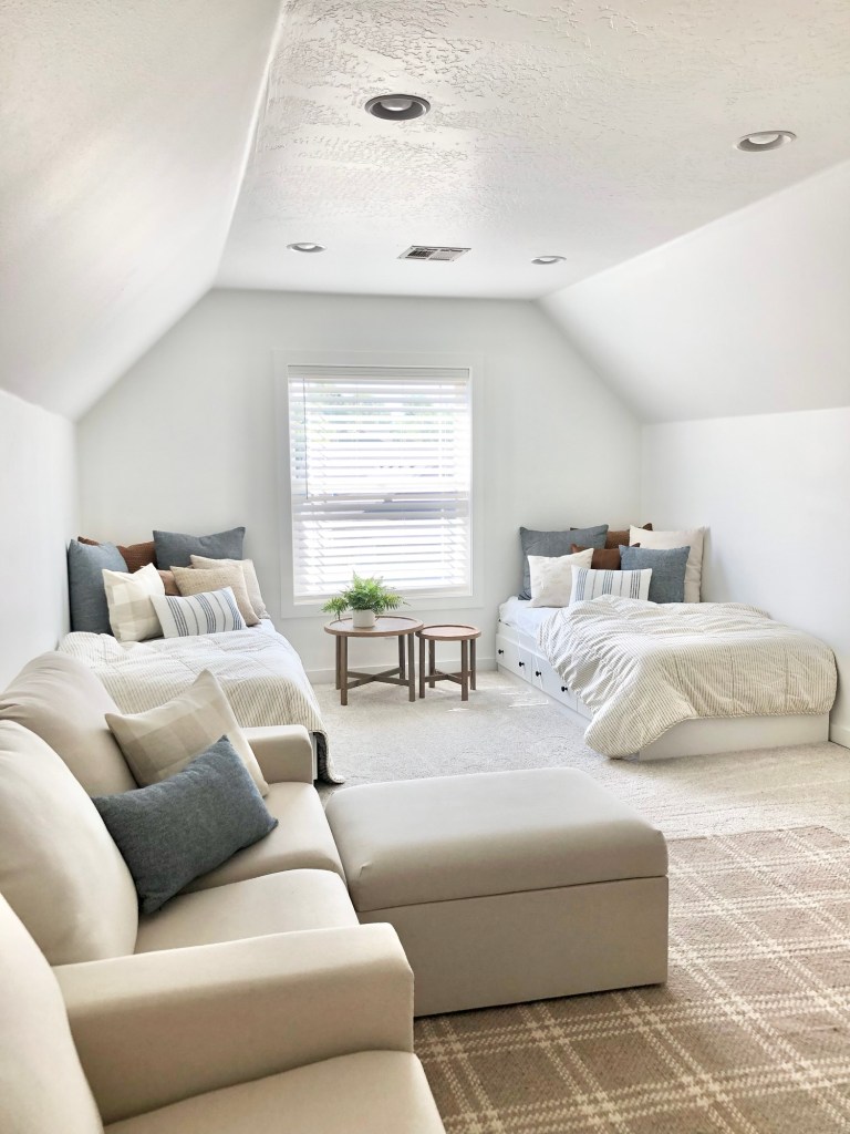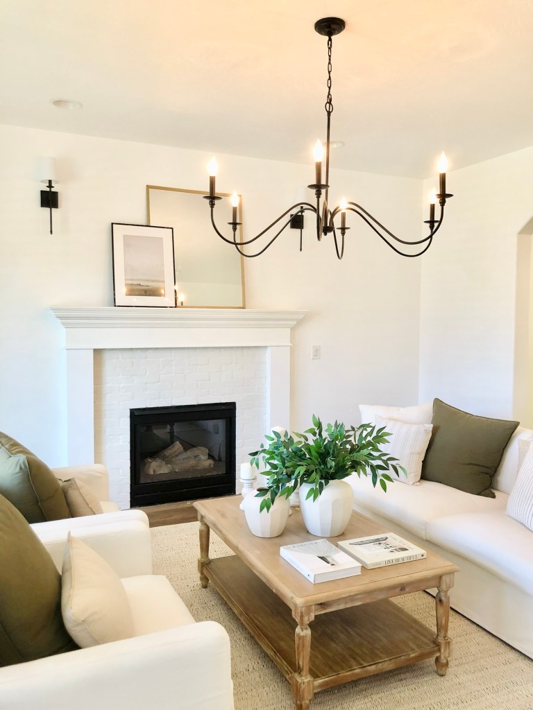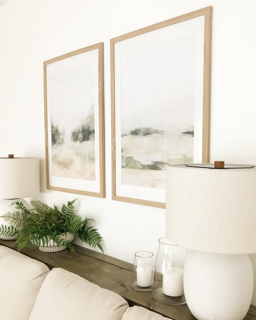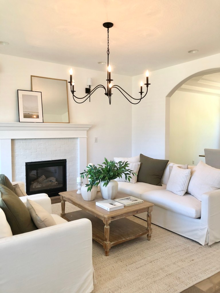 Wall color: High Reflective White by Sherwin Williams, Sofa: Home Reserve (color: Maltese Flax)