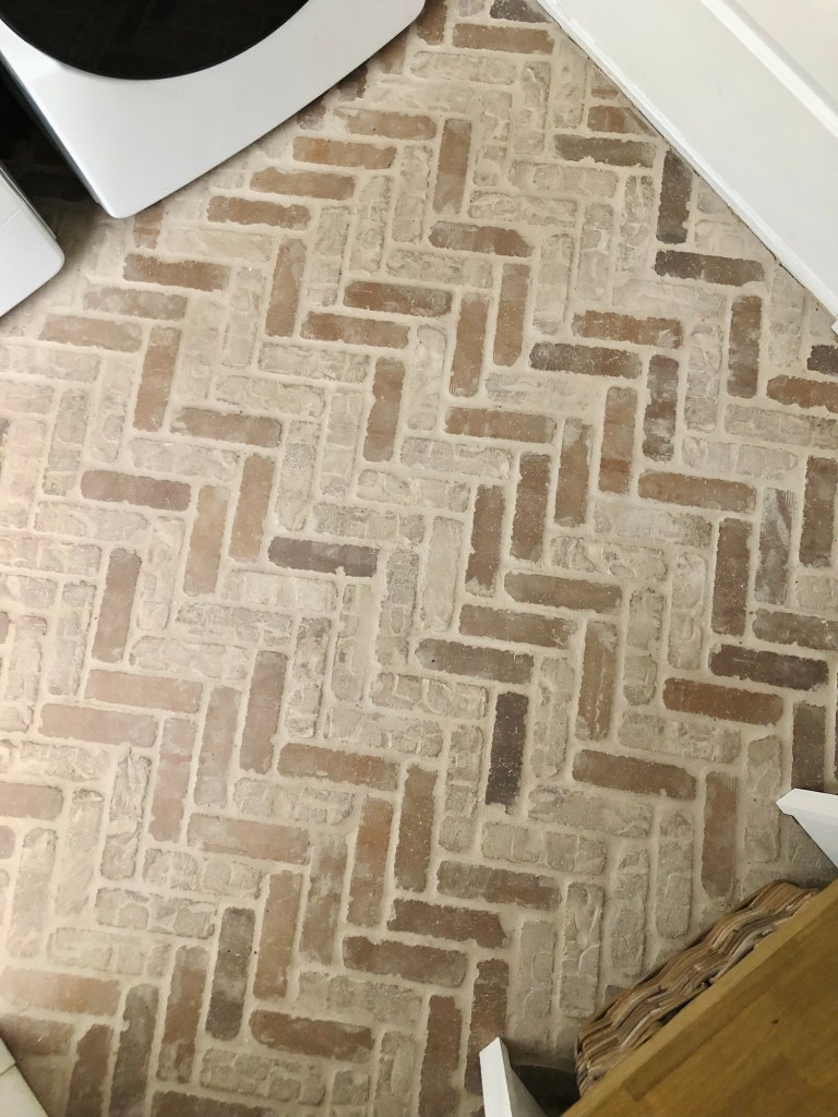 Old Mill Brick color: Rushmore from Home Depot (grout color is a custom mix)